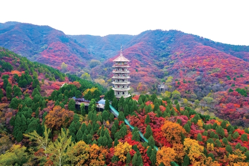深秋時節,濟南西部城區紅葉漫山